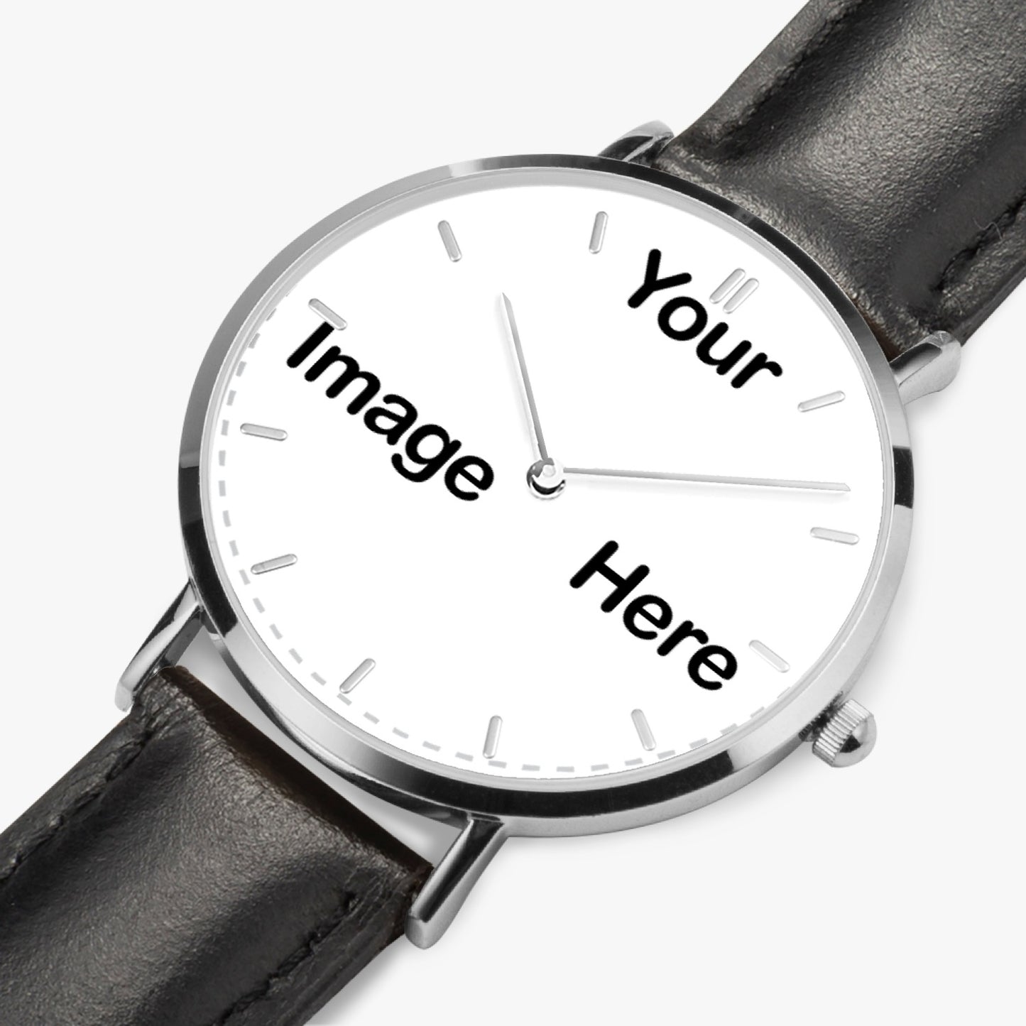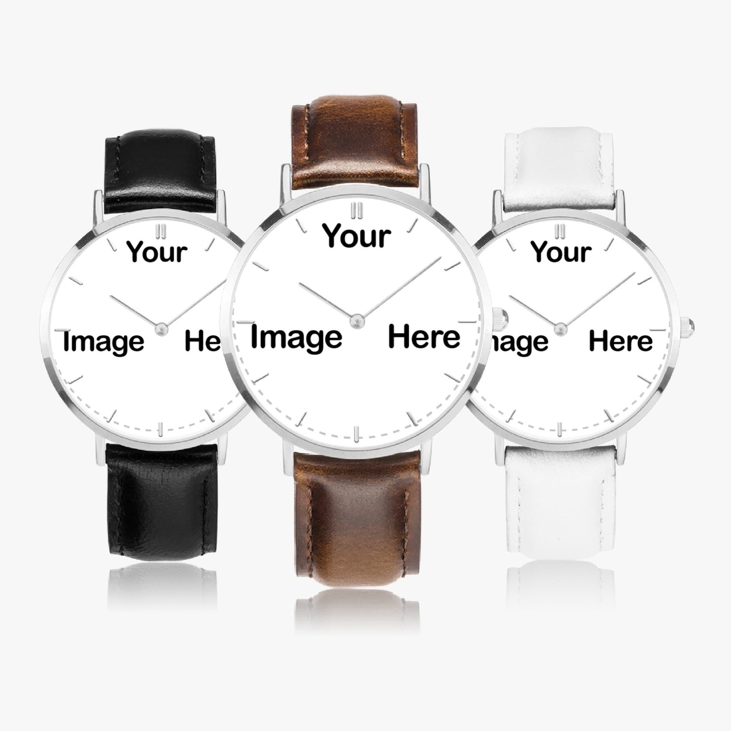 Personalized Photo Hot Selling Ultra-Thin Leather Strap Quartz Watch (Silver With Indicators)